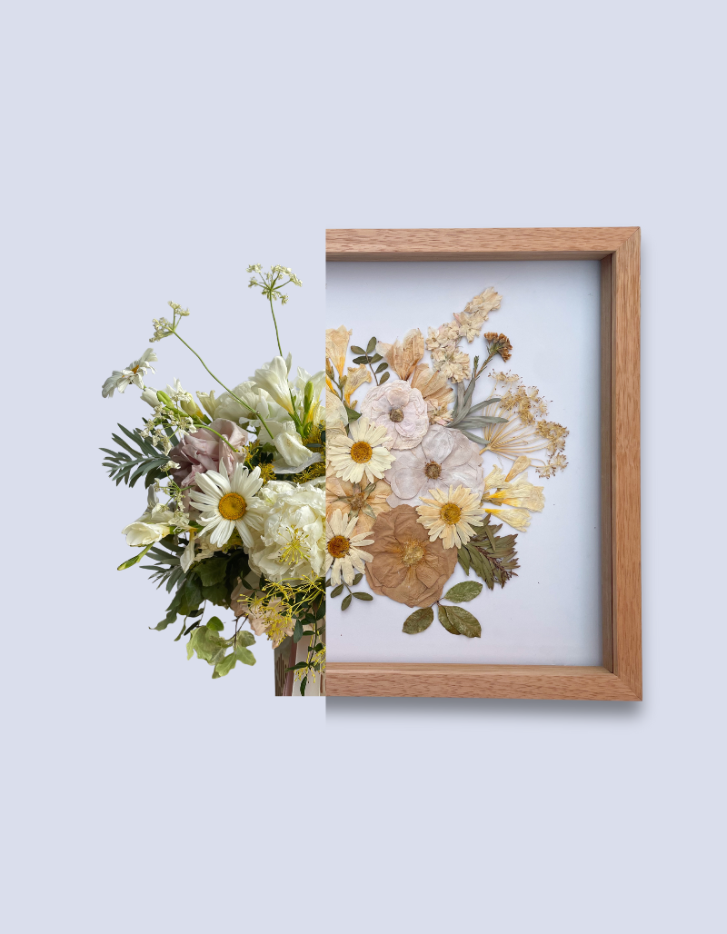 At Artlay Studio, we transform your flowers into a timeless framed artwork that tells your unique story.