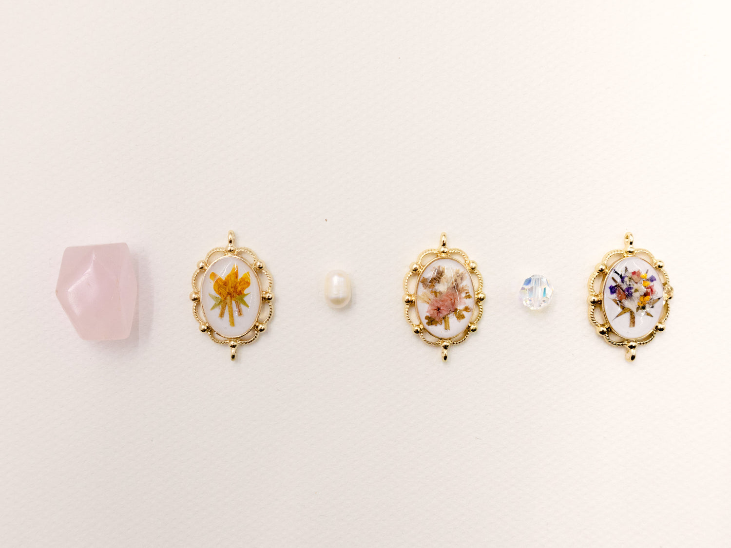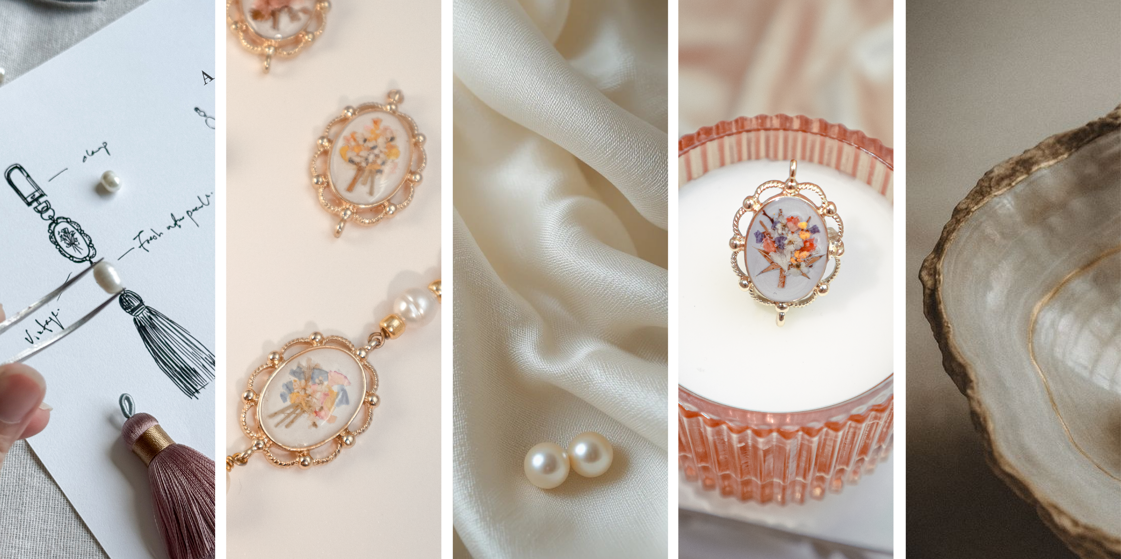Framed in Victorian-inspired pendants and adorned with pressed florals and natural gemstones, each design captures a fleeting moment, preserving its glow through time.